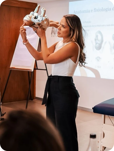 Em 15 anos de prática clínica e mais de 1.800 nascimentos acompanhados, fui pioneira na presença fisioterapêutica em salas de parto em Cuiabá. Essa vivência profunda me levou naturalmente à docência: criei disciplinas universitárias e idealizei o único Curso VIP do Brasil com prática real em centro obstétrico.