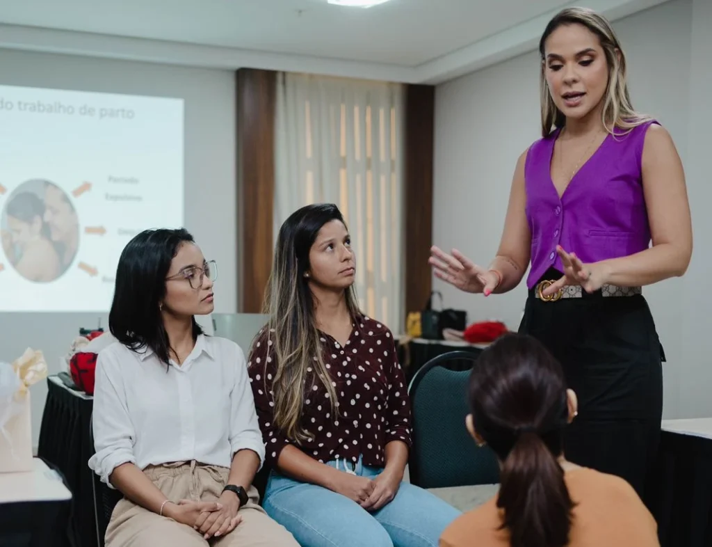 Mas poucos vão te preparar para o momento em que você estará frente a frente com uma mulher em trabalho de parto, precisando tomar decisões, manejar dor, conduzir posições e sustentar emocionalmente aquele processo.